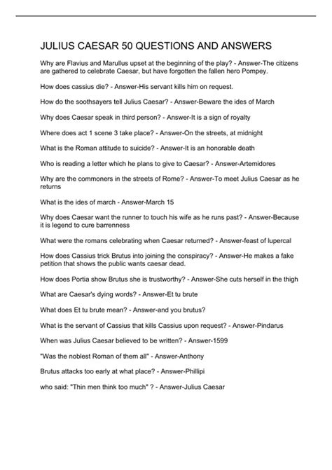Read Online Julius Caesar Detailed Study Questions Answers Reader