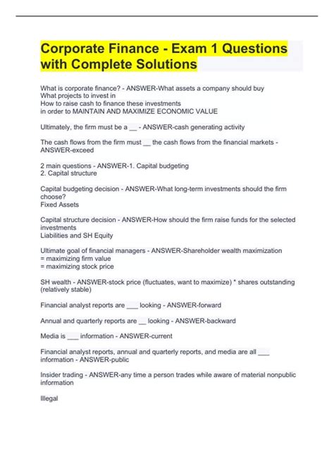 Download Corporate Finance Exam Questions And Solutions Gbc PDF