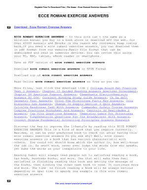 Download Ecce Romani Ii Exercise Answers Kindle Editon online is a convenient and frugal way to read Ecce Romani Ii Exercise Answers you love right from the comfort of your own home. Yes, there sites where you can get Kindle Editon "for free" but the ones listed below are clean from viruses and completely legal to use.