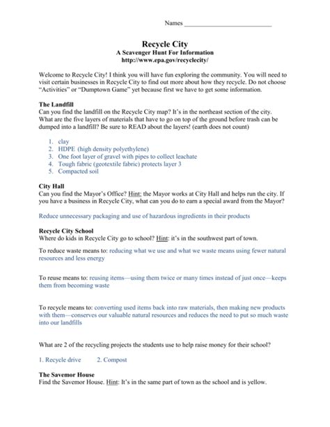 Read Online recycle city activity answer key Kindle Editon