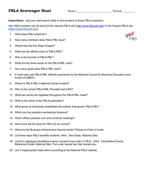 Read Fbla Internet Scavenger Hunt Answers Sheet Reader